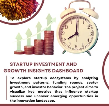 To explore startup ecosystems by analyzing investment patterns, funding rounds, sector growth, and investor behavior. The project aims to visualize key metrics that influence startup success and uncover emerging opportunities in the innovation landscape through interactive dashboards.